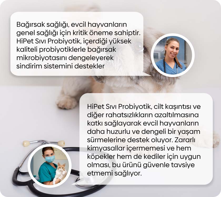 HiPet, probiyotiklerle güçlendirilmiş özel formülüyle, evcil hayvanınızın bağırsak sağlığını günlük olarak destekler. Her gün yalnızca birkaç damla eklemeniz, onların sağlıklı ve mutlu kalmaları için yeterli!
